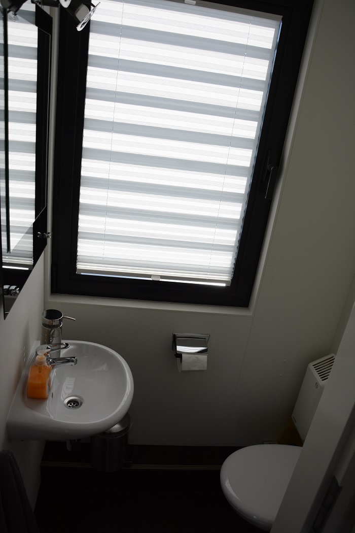 | Das Duschzimmer Auf dem Hausboot stehen Dusche und WC in getrennten Räumen zur Verfügung. Das Duschzimmer hat zusätzlich zur Dusche noch ein Waschbecken mit einem darüber angebrachten Spiegel und wird mit einem Handtuchheizkörper beheizt. Im Regal ist Platz für persönliche Dinge und zusätzlich steht ein Fön zur Verfügung. |