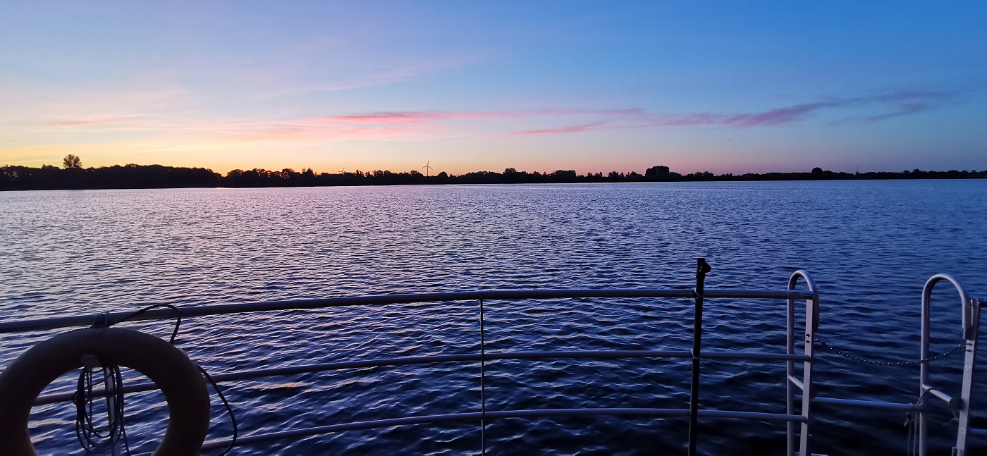 Ein Blick von der Bugterrasse, im Sommer ausschließlich Frühaufstehern vorbehalten